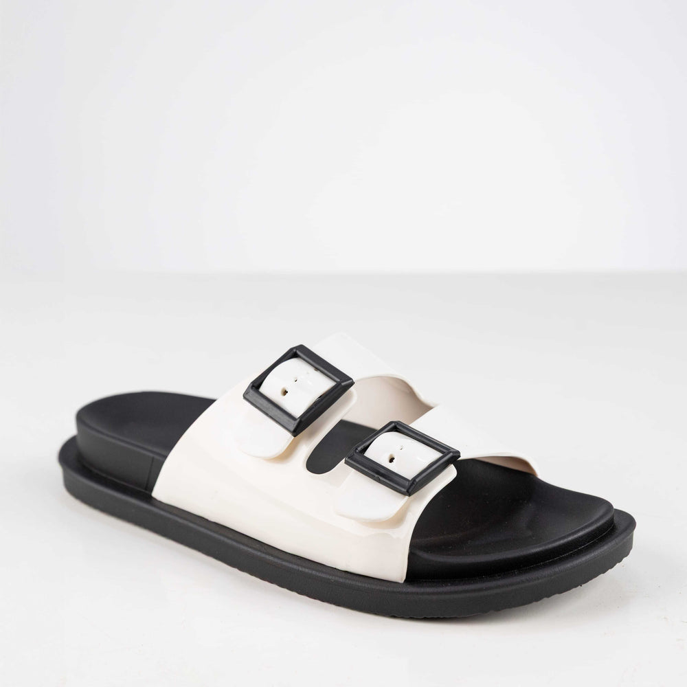 Cherry is made with jelly injected material ,has 2 trendy straps with 2 plastic buckles ,water resistant, Light weight, anti-slip sole, and summerish vibrant color, Easy to clean, highly durable and slip on/off style to guarantee ultimate comfort and style.