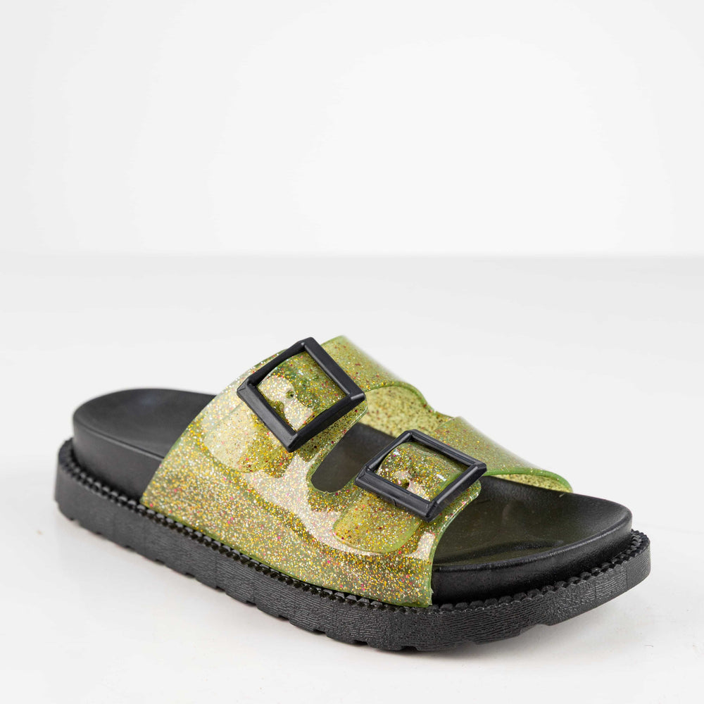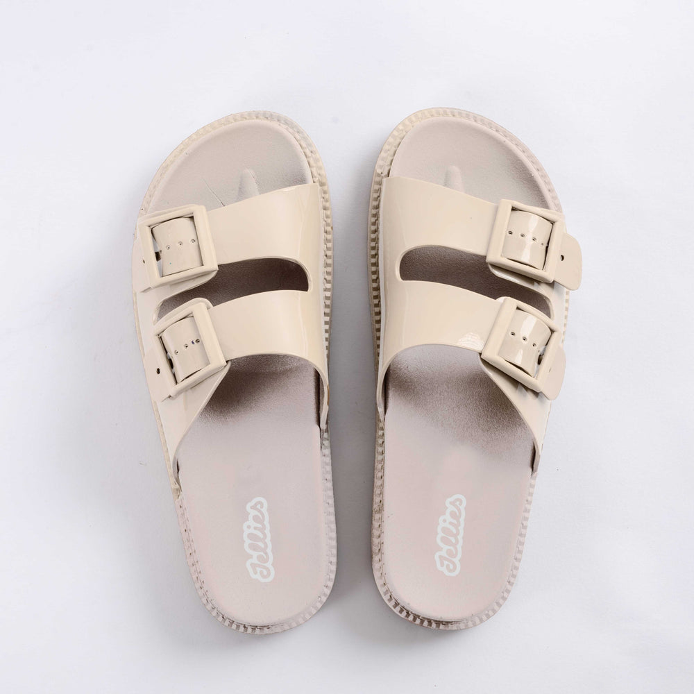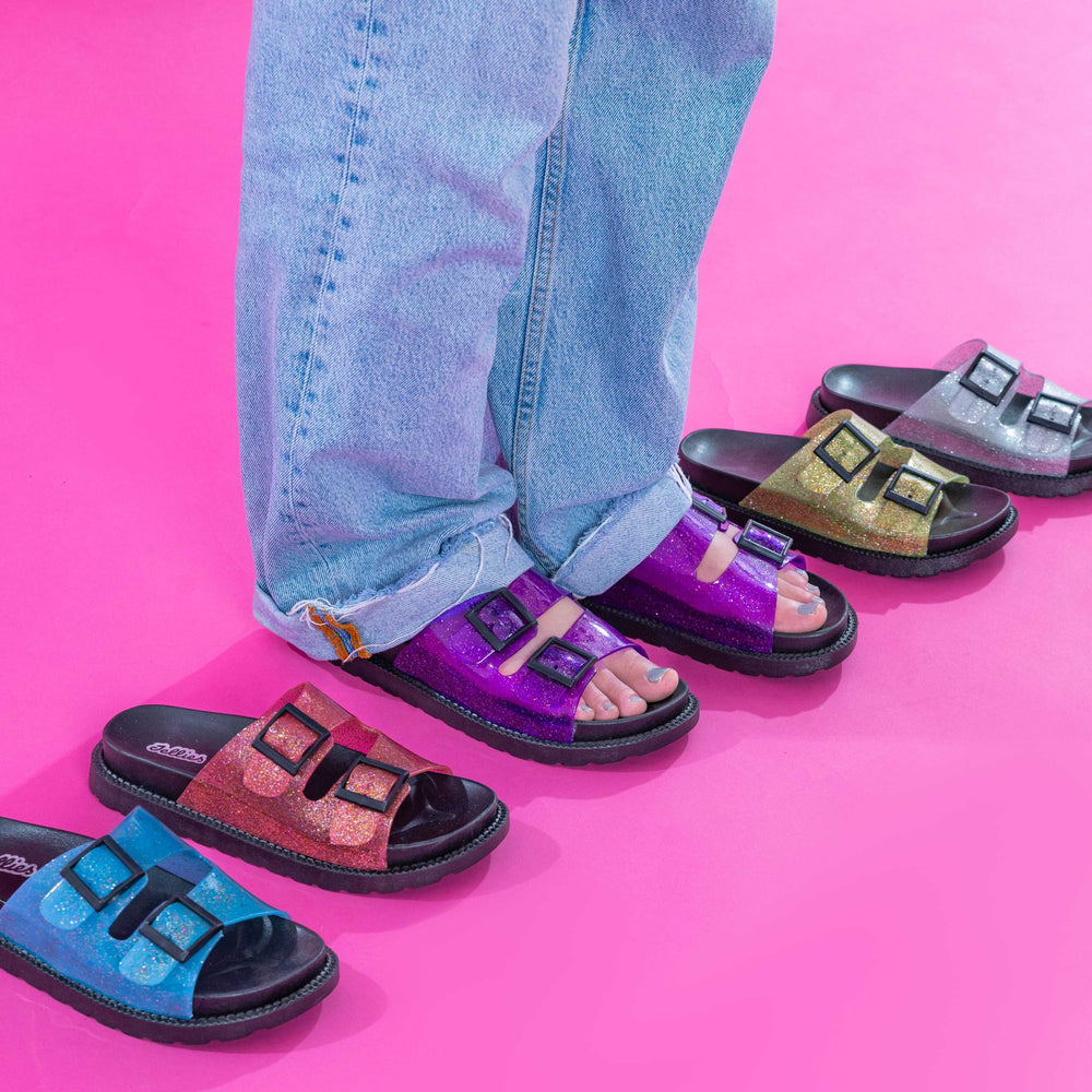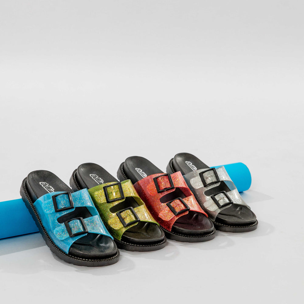 Verona is made with jelly injected material ,has 2 trendy straps with 2 plastic buckles ,water resistant, anti-slip sole, and summerish vibrant colour. Easy to clean, highly durable and slip on/off style to guarantee ultimate comfort and style.